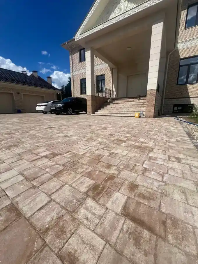 Ценообразование зависит от основания: песок дешевле, но подходит для лёгких нагрузок (дорожки, двор). Щебень и бетон дороже, зато выдерживают автомобили и дают долговечность покрытия.