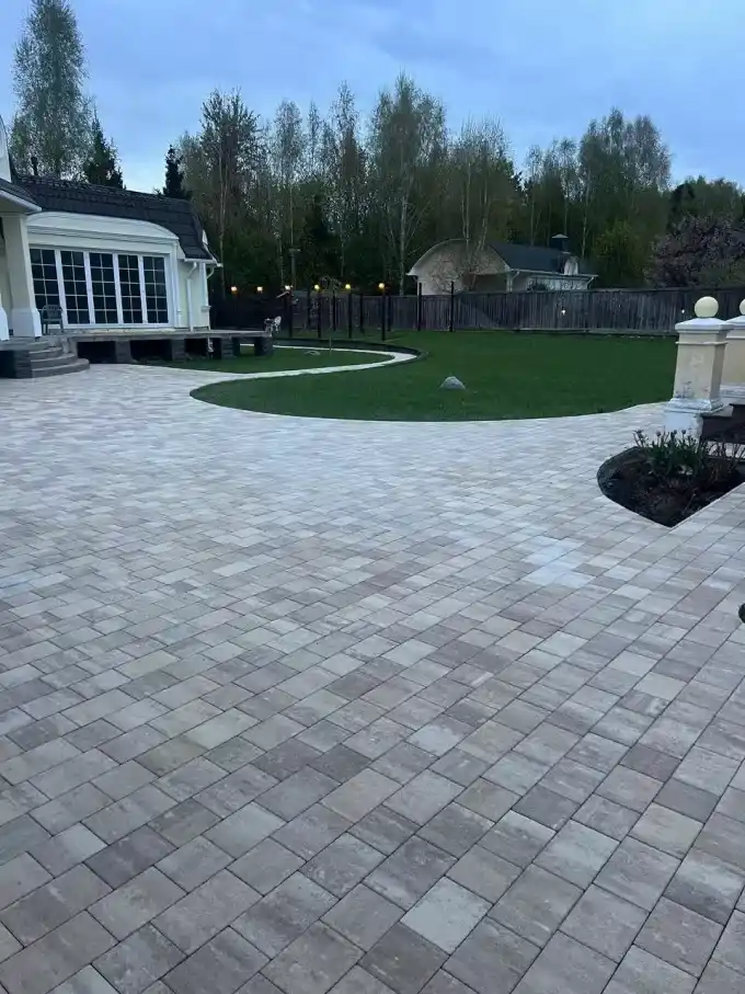 Весь цикл работ: доставка, укладка плитки, озеленение, дренаж, бордюры